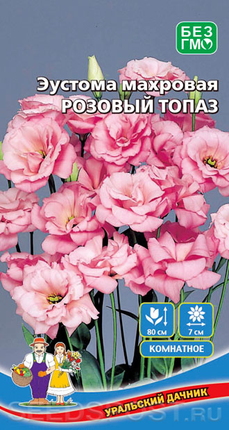 Необыкновенно красивое многолетнее растение, выращиваемое как однолетнее или оранжерейное и используемое преимущественно для получения роскошной срезки. Куст прямостоячий, с высокими прочными цветоносами, на каждом из которых образуется огромное количество бутонов. Большие, пышные цветки розовой окраски, по форме очень напоминающие розочки, создают атмосферу праздника и подарят массу положительных эмоций. Великолепное комнатное украшение. Букет из эустомы прекрасно стоит в вазе, постепенно раскрывая новые бутоны. Отличается очень обильным цветением.